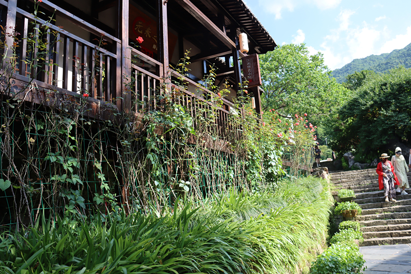 午后的阳光洒在飞檐翘角的古建筑上,溪水潺潺,灯笼轻摇,高空索道穿云破雾,扶摇直上。随着海拔升高,视野豁然开朗。脚下是翻滚涌动的云海,如梦似幻;远处是层峦叠嶂的翠峰,如诗如画,穿梭于云雾之中,宛如置身仙境!